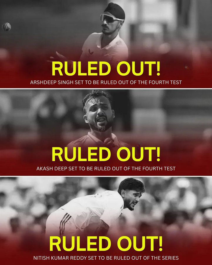 - Nitish Kumar Reddy, another young prospect, has also been ruled out due to a knee injury.